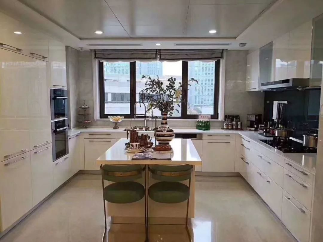 极简纯白的厨房中岛台面,既可以当作料理台又可作为日常餐桌使用,边边角角,条条框框,有意无意间,都在体现对优质生活的追求。