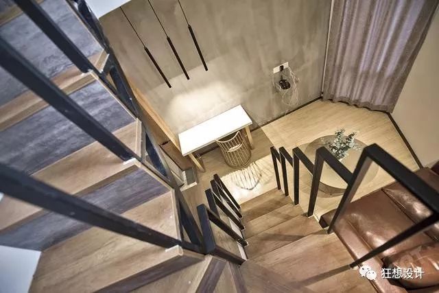 设计师为空间量身定制的原创整体化家具,让每一寸空间都利用合理,并且满足高品位的视觉感官。曲折的楼梯,打造出有层次感的艺术化空间效果,黑漆的楼梯扶手与室内大面积木色元素交织出古朴典雅的美感。