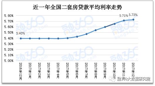 2017年12月全国二套房贷款平均利率为5.73%,较上月上涨0.02个百分点。