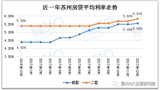 融360监测数据显示,2017年12月苏州首套房贷款平均利率为5.56%,较11月监测数据(二套房平均利率5.49%),上浮0.07个百分点,二套房贷款平均利率为5.83%,较11月监测数据(二套房平均利率5.68%),上浮0.15个百分点。