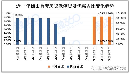 图2-16:近一年佛山首套房贷款停贷及优惠占比变化趋势