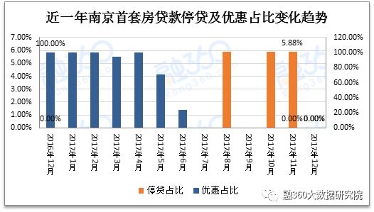 图2-18:近一年南京首套房贷款停贷及优惠占比变化趋势