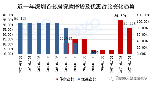 图2-8:近一年深圳首套房贷款停贷及优惠占比变化趋势