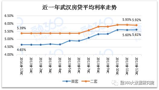 融360监测数据显示, 2017年12月武汉首套房贷款平均利率为基准1.145倍,达到5.61%。在监测的14家银行中, 3家执行基准利率上浮10%;9家银行执行基准上浮15%;执行基准上浮18%和20%各有1家银行。 本月武汉首套房利率较上月上涨0.01个百分点,保持稳定。