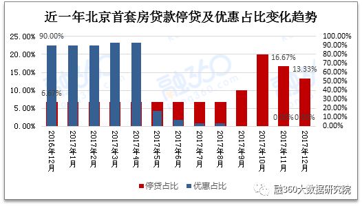 图2-2:近一年北京首套房贷款停贷及优惠占比变化趋势