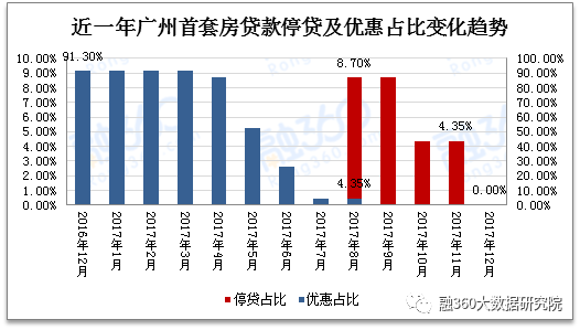图2-6:近一年广州首套房贷款停贷及优惠占比变化趋势