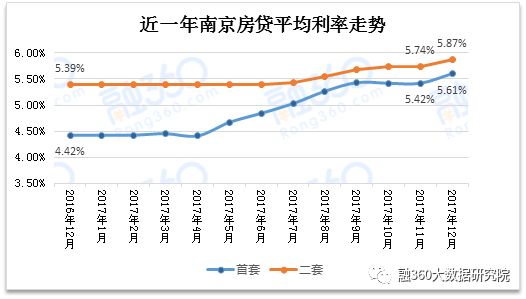 融360监测数据显示, 2017年12月南京首套房贷款平均利率为基准1.14倍,达到5. 61%。在监测的17家银行分(支)行中,除2家执行基准利率上浮10%外,其余银行均执行基准上浮15%。本月南京首套房贷利率较上月上浮0.19个百分点,受政策影响整体利率上涨幅度较大。