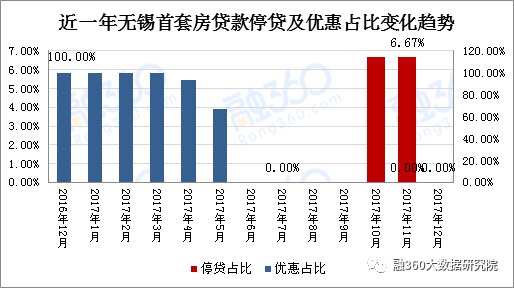图2-12:近一年无锡首套房贷款停贷及优惠占比变化趋势