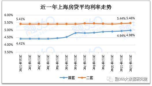 融360监测数据显示,2017年12月上海首套房贷款平均利率为4.98%,较11月监测数据(首套房平均利率4.94%),整体利率水平上浮0.04个百分点,二套房贷款平均利率为5.46%,较11月监测数据(二套房平均利率5.44%),整体利率水平上浮0.02个百分点。