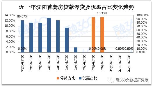 图2-14:近一年沈阳首套房贷款停贷及优惠占比变化趋势