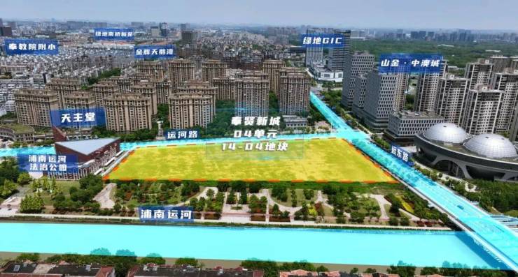奉贤新城04单元14—04区域地块,东至远东路,南至浦南运河绿地,西至南上海天主堂,北至运河路。周边交通便利,距地铁5号线环城东路站900米;商业配套成熟,附近有宝龙城市广场、经发商业广场等。