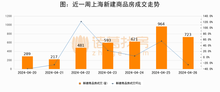 【上海成交日报】04月26日新房成交723套;涨价房源160套