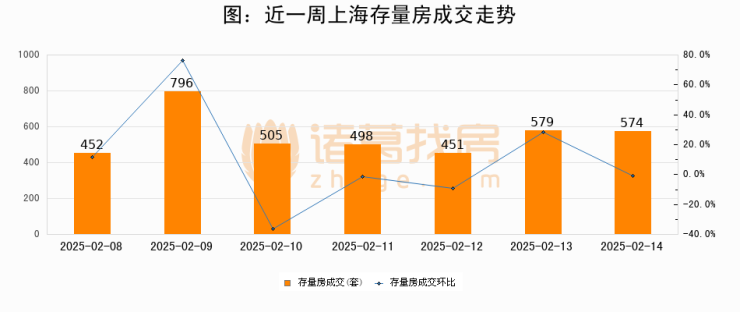 【上海成交日报】02月14日二手房574套;涨价房源153套