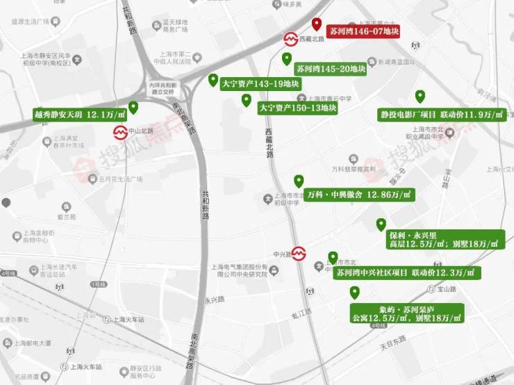两幅地块靠近1号线中山北路地铁站、8号线西藏北路站。总出让面积为2.27公顷,容积率2.5,总价40.902亿元。