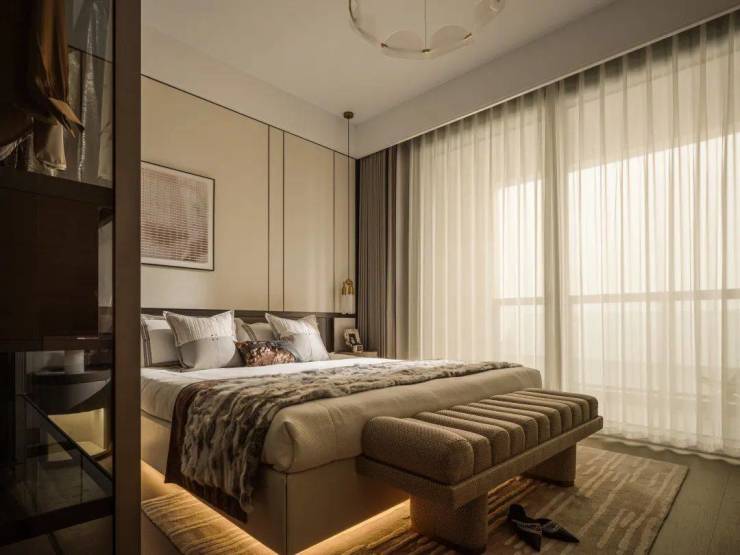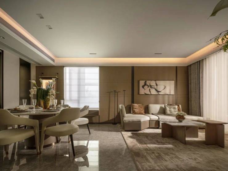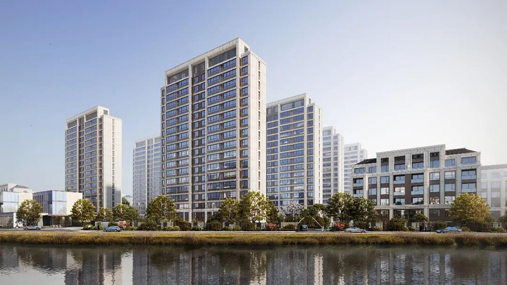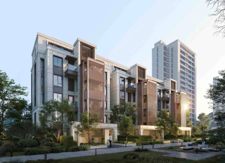嘉定新城御花园平均容积率仅1.74,由9幢6F叠加别墅+9幢17F墅境高层组成,主推建面约103㎡精装3房2卫,建面约147-157㎡精装叠墅,产品得房率高达约80%。项目是现代典雅主义建筑风格,外立面以米黄色真石漆为主,结合局部干挂石材,配以精致的线脚,深色的建筑基座,透明隔热玻璃、断桥铝窗框等,在立面上形成层次感。整体从外至内构建了“城市道路—社区入口广场—景观道路—风景厅室”的四重景观体系,创造了舒适休闲的空间氛围。