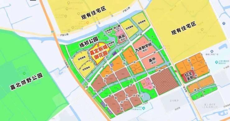 嘉定新城御花园位于嘉北郊野公园东侧,国际赛车场北侧,东至秋彤路,南至府谷路,西至练祁支河,北至秋彤路。项目四面环水,景观资源非常丰富,两面紧邻绿化和规划公园,南面是天然河道鸡鸣塘,北面紧邻练祁公园,西面更有嘉北郊野公园,东侧拥有大片规划绿地。