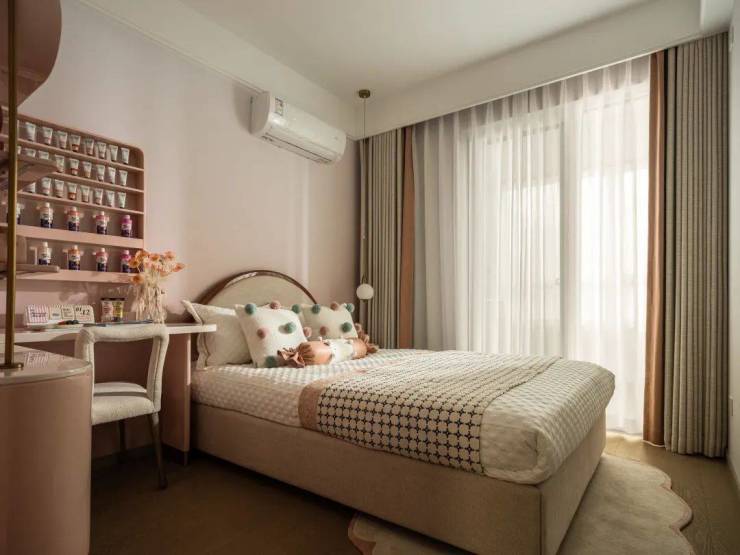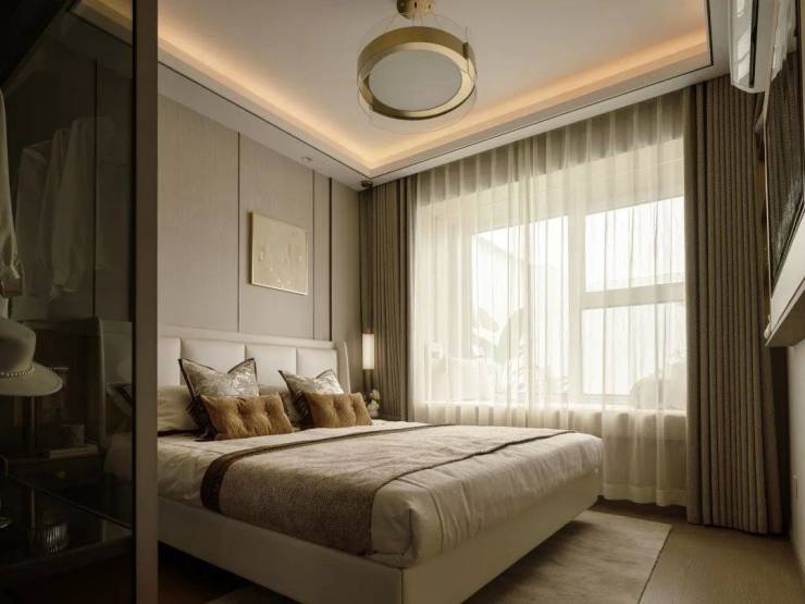 项目主力户型建面约103㎡3房2厅2卫,户型三开间朝南、室内“2个飘窗+2阳台”、再加上“2卫”的设计,在采光、视野、通风、私密性和实用性都十分出色。厨房采用三移门交付,地柜和吊柜采用定制橱柜,台面为石英石,油烟机和灶台采用老板品牌,摩恩的大单槽水槽和厨房龙头,并配备老板消毒柜。