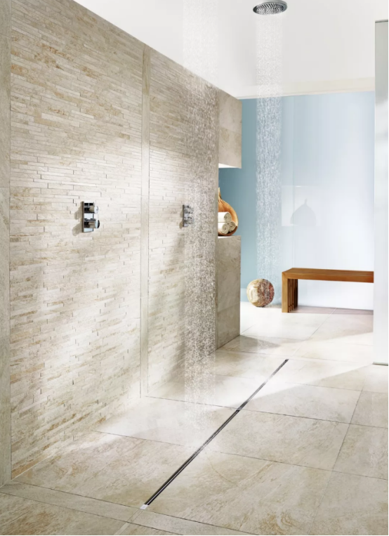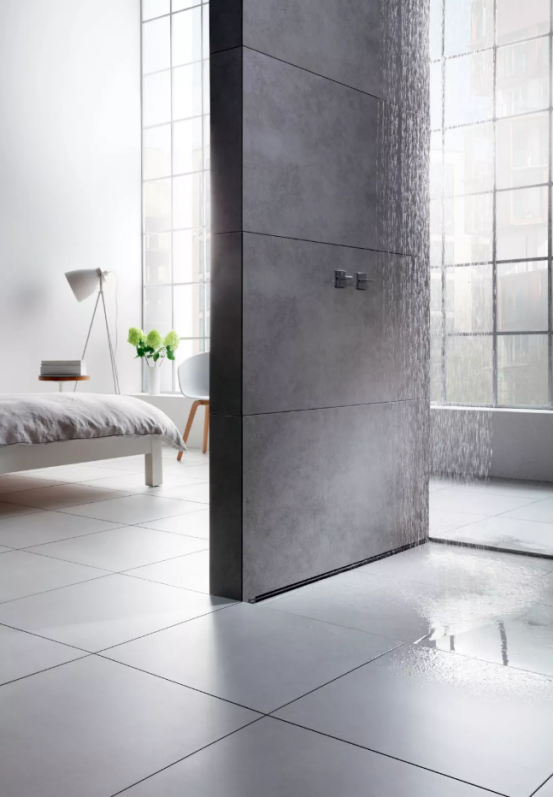 传统地漏需要安装在地砖之上,无论采用什么材质和颜色,无论如何费心规划安装位置(在四块瓷砖的交汇处,或让地漏的四角对准地砖的十字线,或装在最靠近墙面的地砖处),都会破坏地面及整体空间的设计感,更谈不上美观、有质感了。