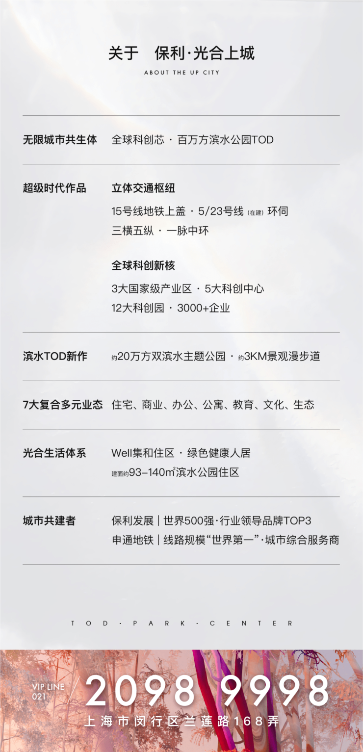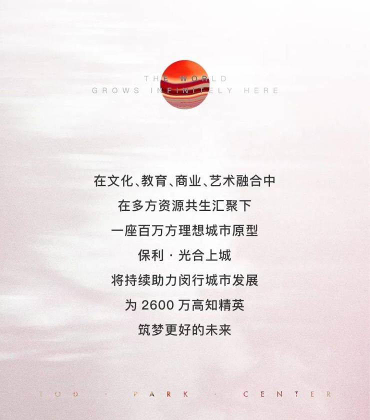 时间回答一切,从更懂地铁上盖物业开发的申通与更懂城市运营的保利发展的携手,到TOD微城市与20万方滨水公园的相遇,再到教育与文化资源的合作,在各方资源集成和文化塑造,无数专业力和创造力共振下,优质资源和创造力在这里无限汇聚,一个具有光合反应的生态平台向我们缓缓走来。