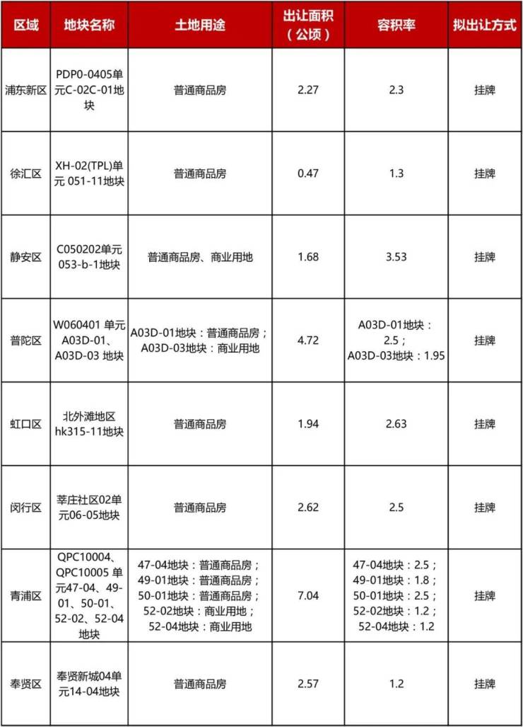 徐汇衡复、静安东斯文里、虹口北外滩三幅地块均位于内环内,极有可能引发房企激烈争夺,或将诞生新一轮“地王”。此外,普陀真如、浦东唐镇、闵行莘庄、青浦新城、奉贤新城均有宅地出让。