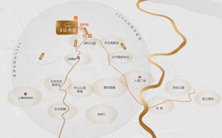 15号线通车之后,顾村真正做到了7/15号线双轨环伺,而保利中企顾村项目,与7号线刘行站的直线距离,仅有800米左右,1站就可换乘15号线,是真正的双轨交盘。