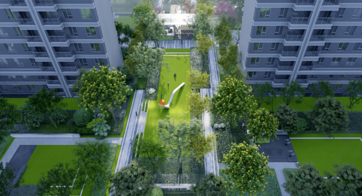 2.绿色生活:以生态绿色自然的生活方式,标定塔尖圈层的生活新高度,通过丰富的植被打造小区园林景观,提升社区富氧生活。