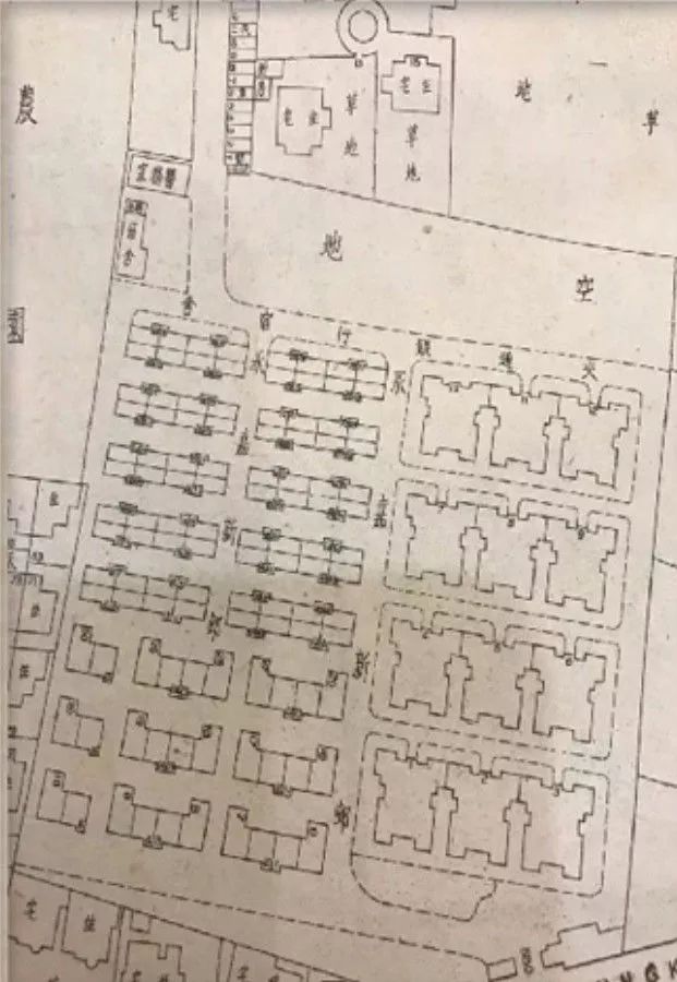 此外,另有三个拐角单元的组合体。‘乙’型和‘丙’型的居室全部朝南,室内穿堂风良好。居室大小在16.00-18.00平方米之间,用料标准中等,比较经济适用。坊内绿化和道路,均较完整。”