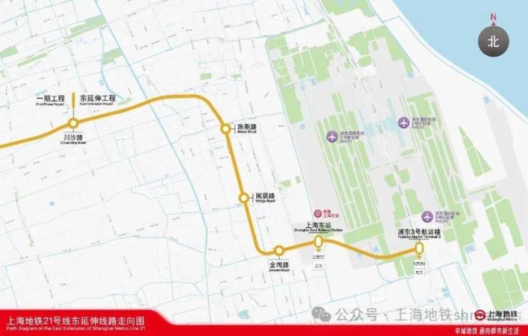 20号线一期东段及东延伸工程线路全长约21公里,设14座车站,张杨北路站已于12月30日开工建设。