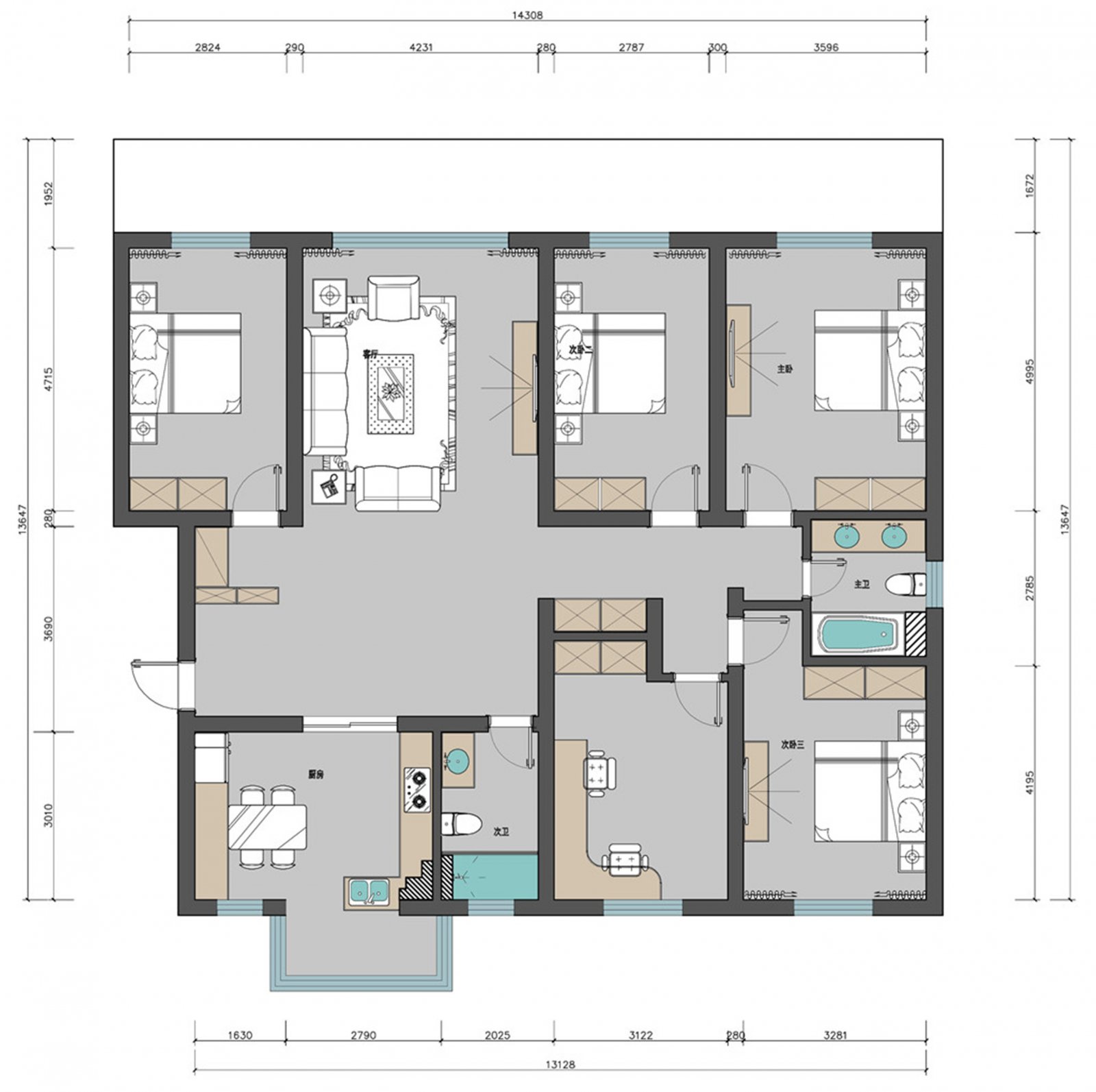 构思营造的平面方案简约而不简单,当入户漫步进来,行走动线非常清晰流畅,纵横有序,没有一丝多余的弯绕。