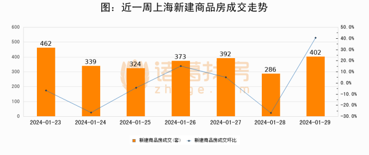 【上海成交日报】01月29日新房成交402套;涨价房源90套