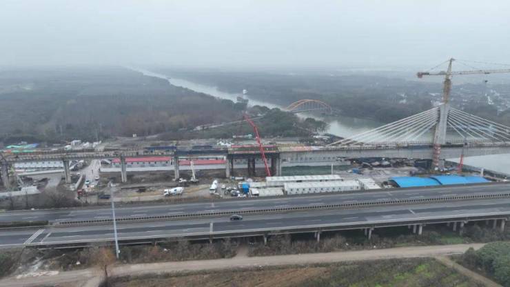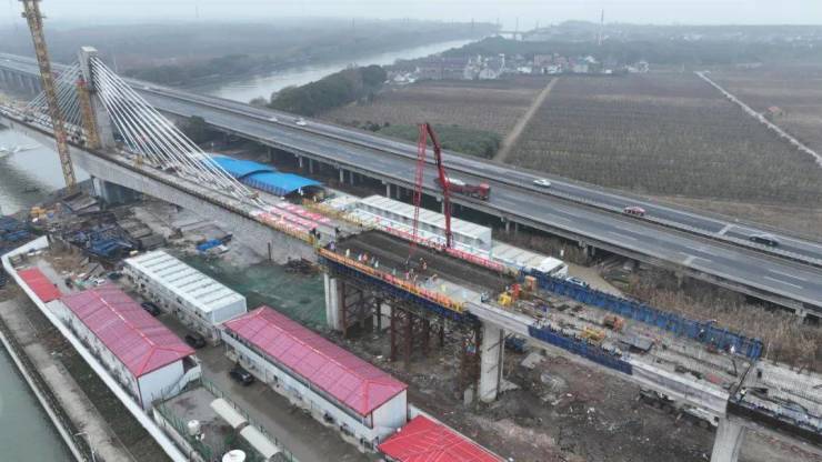 跨拦路港矮塔斜拉桥和跨G50高速连续梁节点桥均为17号线西延伸工程关键控制性节点。拦路港属于三级航道,日常通行流量较高,跨拦路港矮塔斜拉桥全桥总长为380米,其中主跨为180米,一举横跨150米宽度的拦路港河道,是国内轨道交通工程同类型跨度最大的矮塔斜拉桥。跨G50节点桥全桥总长为261米,其中主跨为111米,斜跨了交通繁忙的G50双向6车道高速。上海申通建设集团第二分公司组织设计、监理、施工各方,在挂篮施工中形成一套包含定型化全封闭兜底、挂篮防倾覆“双保险”、竖向后锚应力监测等措施的挂篮安全防护系统,有针对性地制定了质量、安全、机械材料等系列措施。最终在2023年12月相继实现了两座节点桥的顺利合龙。