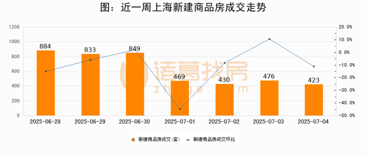 【上海成交日报】07月04日新房成交423套、二手房525套;涨价房源127套