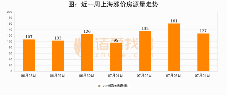 根据诸葛找房数据显示,上海24小时涨价房源量为127套,较07月03日减少34套,环比下降21.1%。与此同时,涨价房源占比小幅回落,对于购房者来说是一个入市窗口期,购房者可抓住时机入市。