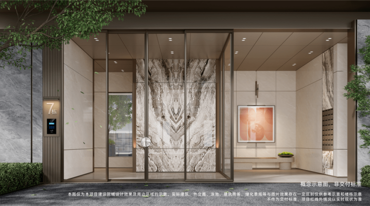 采用石材+铝板+大面积玻璃材质高规格打造,“窄边框设计”展现极简风格,更加轻盈、通透、有质感