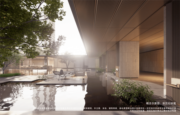比如复合型的泳池,不仅只是每年两个月的实用功能,而让景观渗透进架空层、渗透进宅间、渗透进大堂,让更多的生活场景和自然庭院相交融