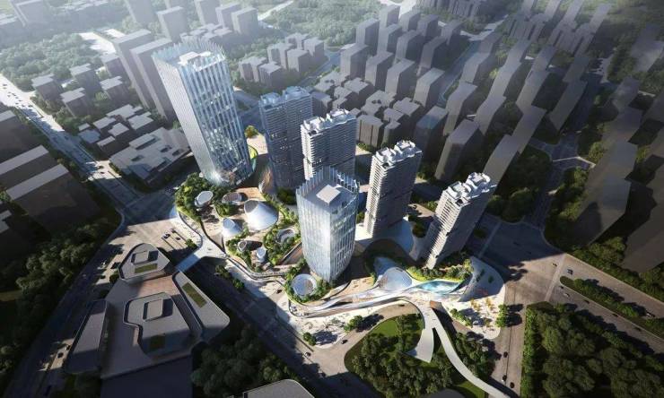 整个21地块包含2栋约200米的办公楼和办公楼裙楼5层的商业中心,还有4栋近150米的超高层住宅,预计于2024年底竣工。