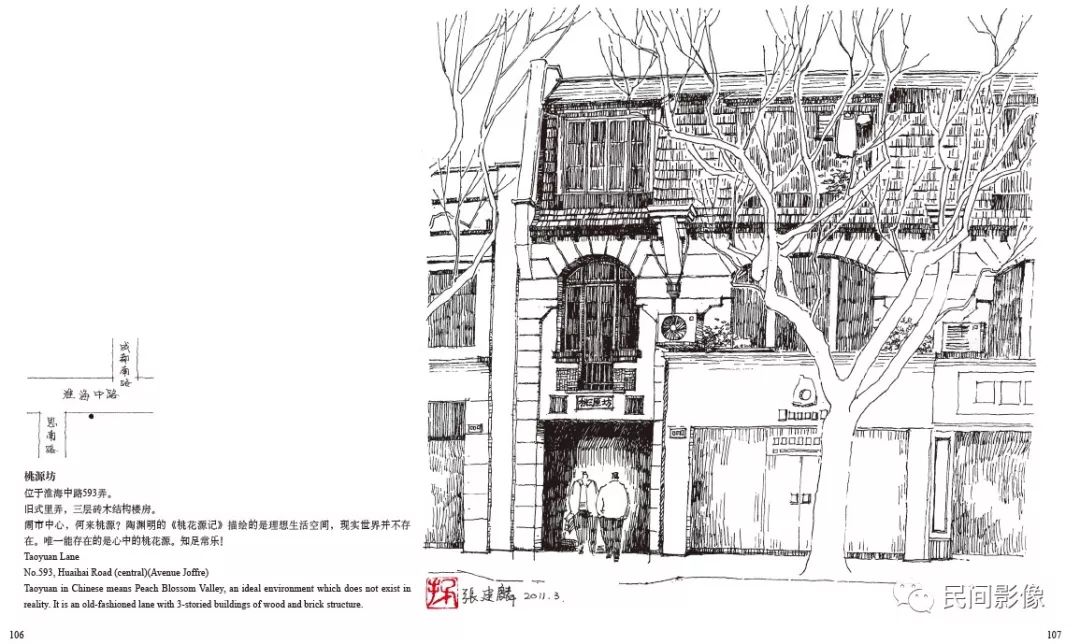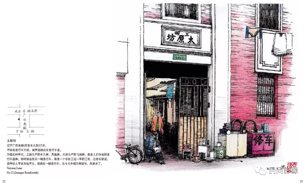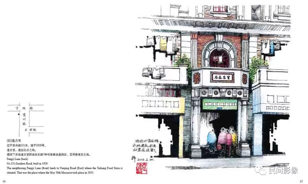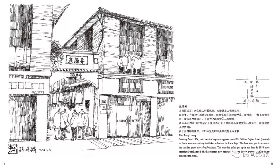 《上海•弄堂口》这本画册精选其中的一百多幅作品,涵盖上海中心城区主要区域。中英对照,并附所在地块图,其中不少作品其原址已经拆除。这本画册成为记录十年乡愁的见证。