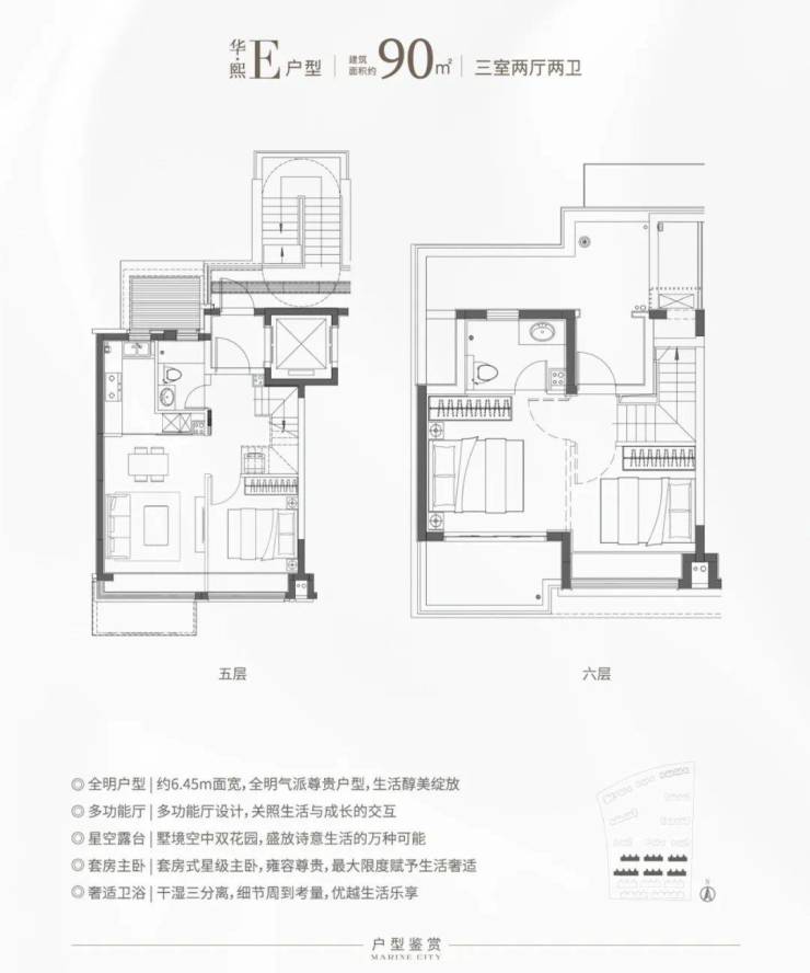 特别是这个E户型,建面仅约90㎡