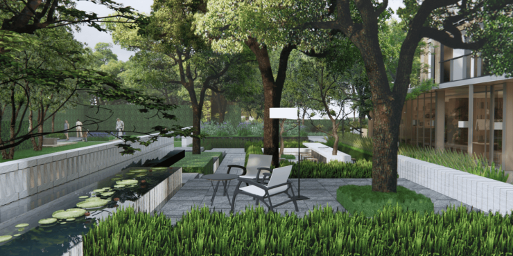 以郁郁葱葱的自然植物为生活底色,曼谷湄南河四季酒店为艺术范本,朗拾花语将对于植物生命的悦己哲思具象化表达,营造度假酒店式的景观舒逸尺度,从而带来生活的沉浸感。