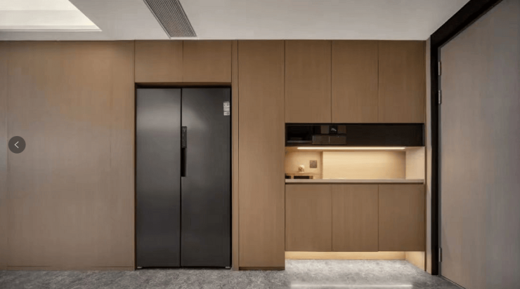 朗拾花语三期加推的建面约92-99㎡纯小高层,在各空间的尺度上达到了平衡。小户型在S墙的设计加持下,把原本在厨房的冰箱外移内嵌至过道空间,使得厨房空间豁然开朗。