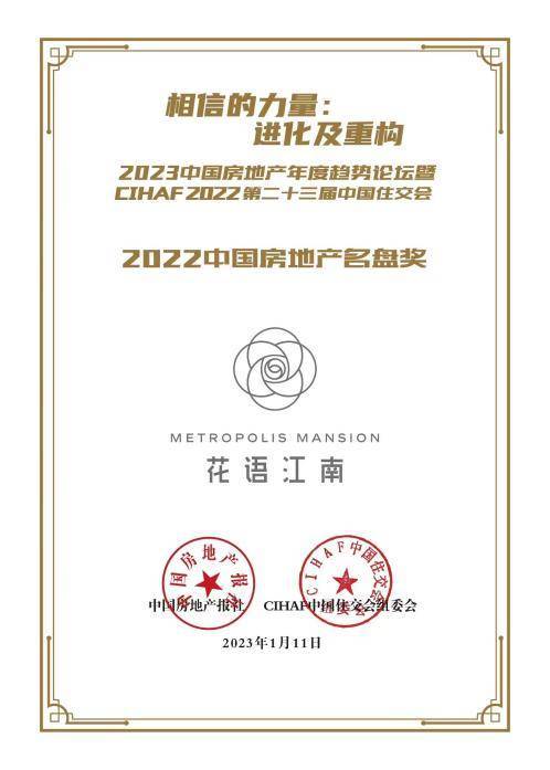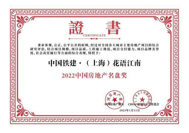 建信于城 行稳致远 | 上海中国铁建·花语江南荣膺2022“名盘奖”