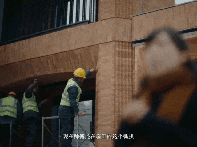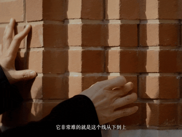 与这个弧拱搭配的是一面如折扇般的砖墙,为了实现这种折扇般层层展开的建筑效果,设计师研发出一种特殊的爪子砖。这是一种齿状的多角砖,传统的制砖工艺很难实现,为此项目团队和制砖专家一起开发模具,制作爪子砖,尽可能减少人为施工中的误差。