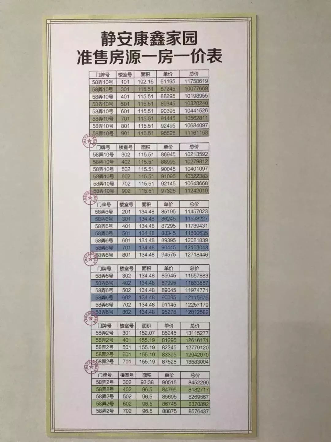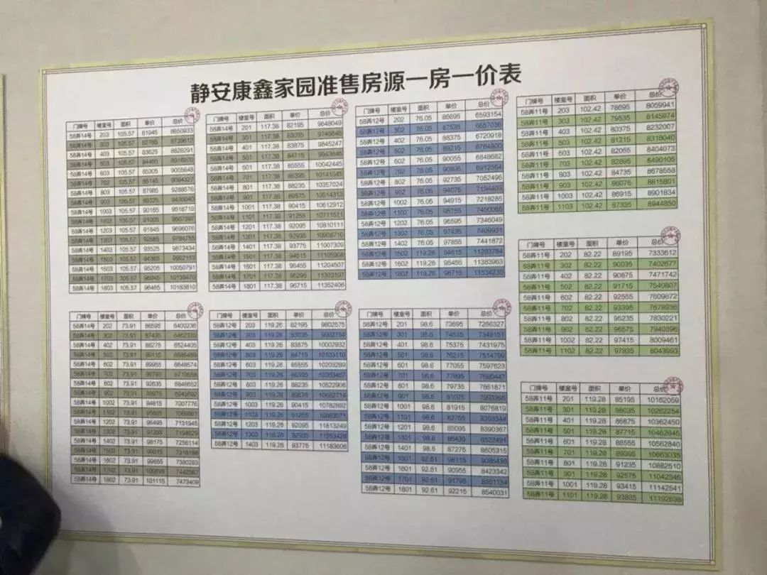从去年至今,上海新房市场调控一度收紧,高端项目预售证获批量也不多,而静安康鑫家园此次获批预售证应该得到了市场格外关注。下图为项目一房一价表公示。
