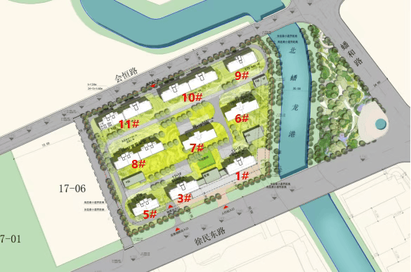 地块出让时间为2025年11月24日,浙江宝业房地产集团有限公司(宝业集团)以总价173024万元竞得,楼面价31561元/㎡,溢价率5.17%。项目东至北蟠龙港,南至徐民东路,西至17-06地块,北至会恒路,建设单位为上海宝曜房地产开发有限公司。