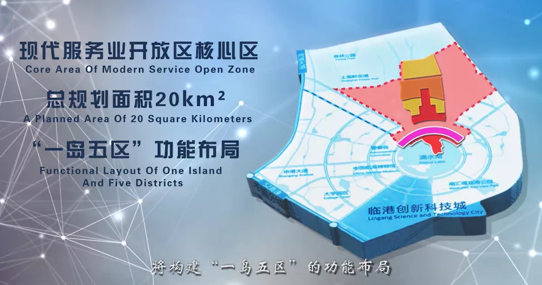 新片区现代服务业开放区核心区将设置“一岛五区”空间布局,打造文化艺术岛、总部湾区、中央商务区、离岸商贸区、国际社区与配套服务混合功能的现代服务业开放区。
