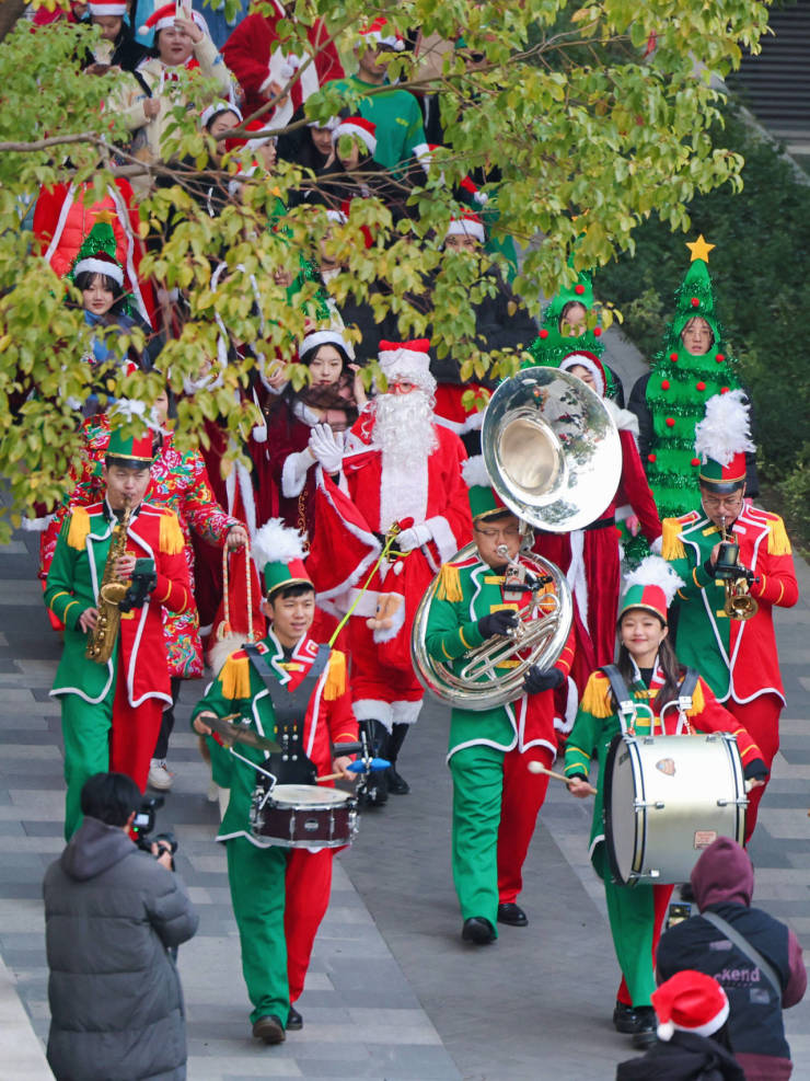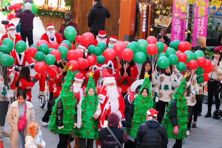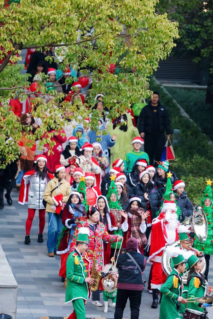 从火出圈的美国纽约Macy's圣诞游行,到万人空巷的伦敦圣诞节游行,再到加拿大多伦多圣诞老人大巡游,「圣诞巡游」几乎是每个国际大都市的年末狂欢“标配”。而今年,上海也迎来了一场属于自己的圣诞大巡游。作为此次冬日嘉年华的重头戏,圣诞大巡游于12月21日-22日在虹桥天地下沉式广场盛大开启。以「圣诞」为dress code,120+城中时髦精加入了这场欢乐的圣诞大巡游,节日的仪式感化作无数精彩的定格。这场属于上海的圣诞大秀共集结了10大主题圣诞巡游方阵,从驾着驯鹿车的圣诞老人、到圣诞合唱乐队、国际芭蕾舞团的优雅表演、圣诞奇幻COS、疯狂的动物、再到BYMB圣诞太极瑜伽方阵、尊巴圣诞舞蹈方阵和Electra自由骑行方阵惊艳亮相,巡游以节日的欢声笑语点燃了现场氛围。