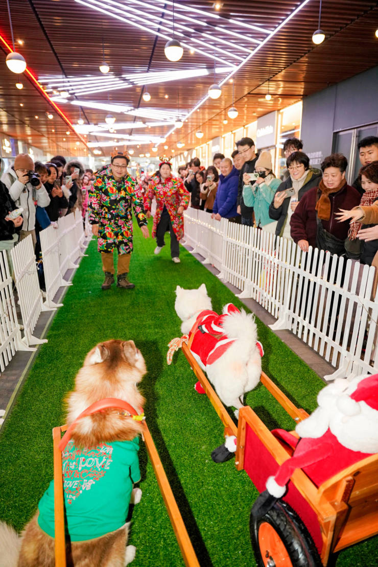 12月22日下午,活动特别邀请上海哈士奇雪橇大队与沪上多家宠物社群共同打造了一场趣味十足的圣诞雪橇大赛。60组宠物家庭参加,狗狗们拖拽雪橇完成30米直线竞速,雪橇上的“圣诞礼物”增添了节日氛围。在圣诞温馨的节日气氛中,观众为萌宠们欢呼助威,令现场洋溢着满满的幸福感。大型犬小型犬在现场与主人一起突破自我,贡献了一场酣畅淋漓的互动。
