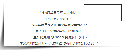 iPhone 8将不再使用金属机身,而是采用双玻璃面板+金属中框的设计,与经典的iPhone 4的外观相似,屏幕两侧没有边框。
