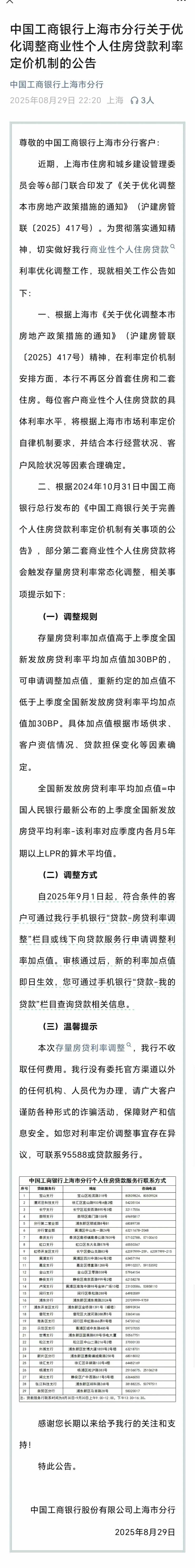 8月29日,工商银行、中国银行、农业银行、建设银行、邮储银行、交通银行等超20家银行发布公告,调整二套房房贷利率,符合条件的存量房贷利率也可调整。