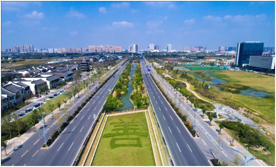目前,嘉善产业新城已建成市政道路约10公里,在建约14公里,“两横四纵”城市骨架基本呈现;完成了景观绿化面积约30万平方米,在建约35万平方米,并完成了8条河道的建设及整治,以云湖、伍子塘、油车港、白水塘、新西塘文化景观带为主线,串联起众多绿地空间,构建起集生态涵养、休闲交流、文艺体验为一体的“蓝+绿”的生态底板。